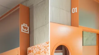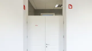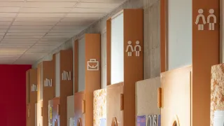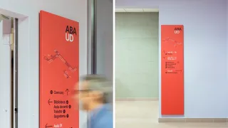 Lo spazio presenta molto porte di tipologia diversa, alcune a sbalzo nel corridoio, altre rientrate rispetto al filo muro. Inoltre molte aule sono accessibili da più di una porta. Queste caratteristiche hanno guidato le scelte di posizionamento degli elementi segnaletici.